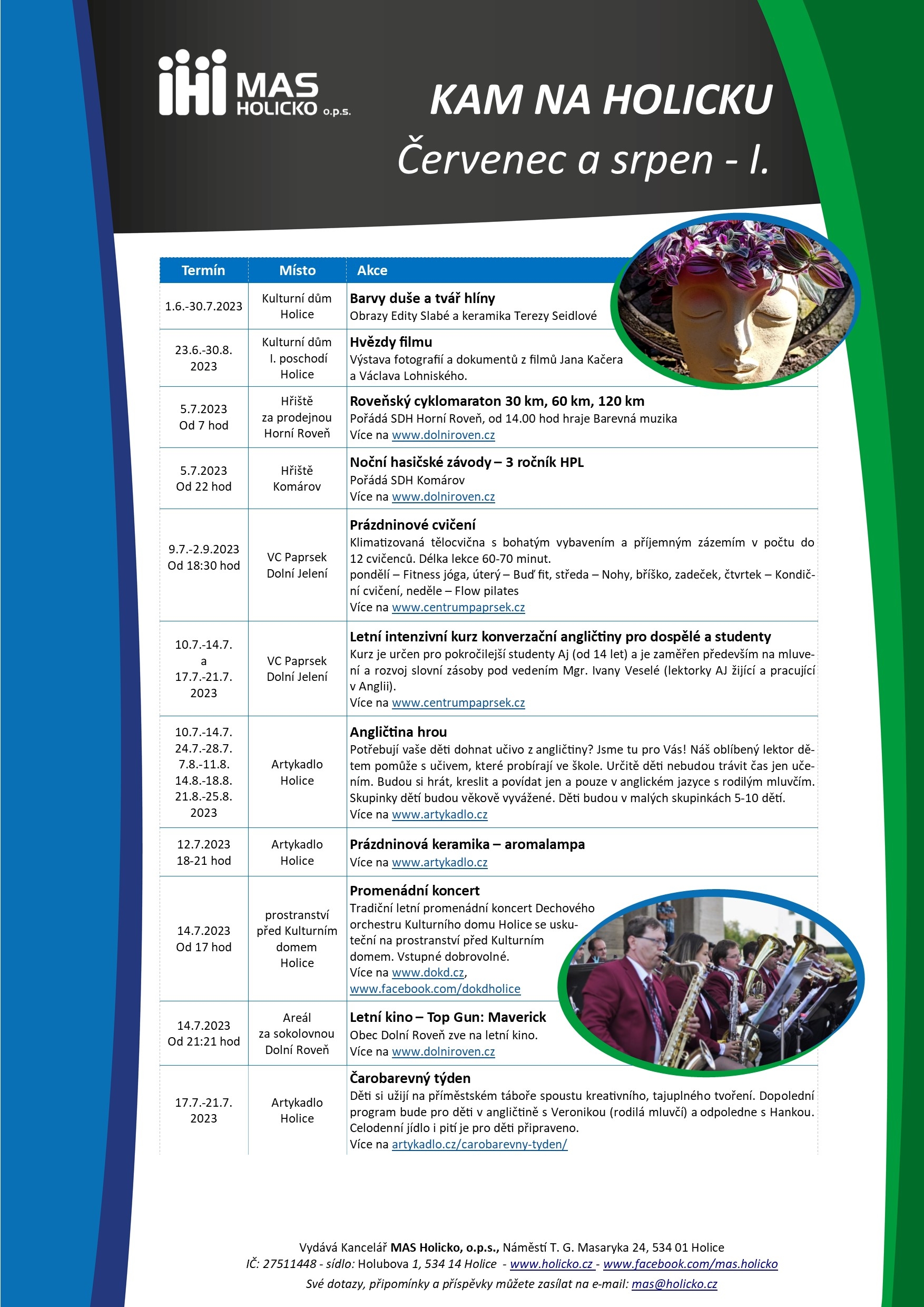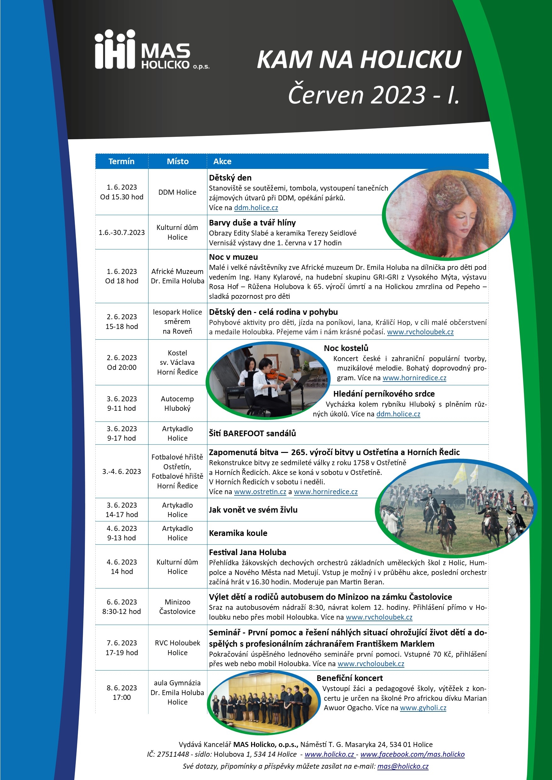 Venku je krásně, sluníčko už začíná připalovat. Tak se pojďte podívat, co nám přináší poslední školní měsíc v oblasti kultury, sportu a trávení volného času na Holicku.