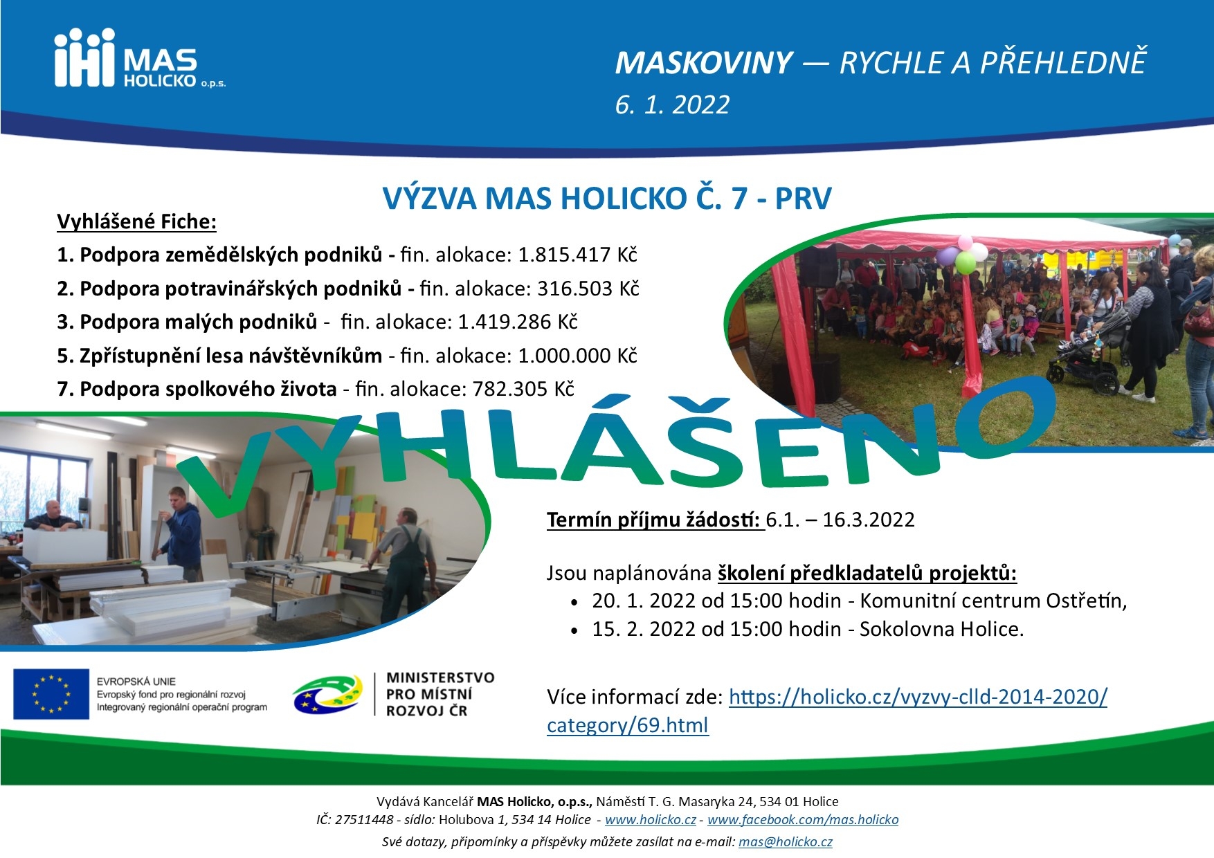 Datum vyhlášení výzvy MAS: 6. 1. 2022