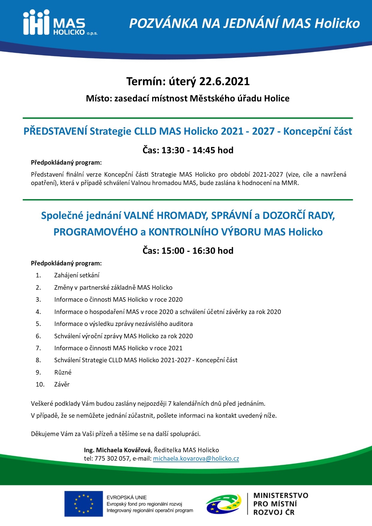 Tímto si Vás dovoluji pozvat na odpolední setkání s MAS Holicko , které je naplánováno na úterý 22.6.2021 .Toto setkání proběhne konečně...